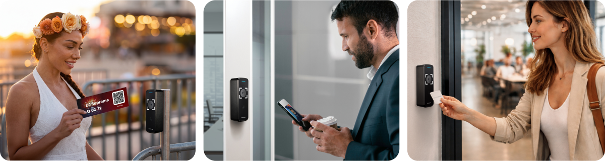 Trong các tòa nhà, phòng gym, sân vận động hay khu vực tổ chức sự kiện, một điểm ra vào có thể phải phục vụ nhiều loại người dùng cùng lúc. Nhân viên sử dụng thẻ RFID, trong khi khách vãng lai hoặc người tham gia sự kiện lại sử dụng QR code.